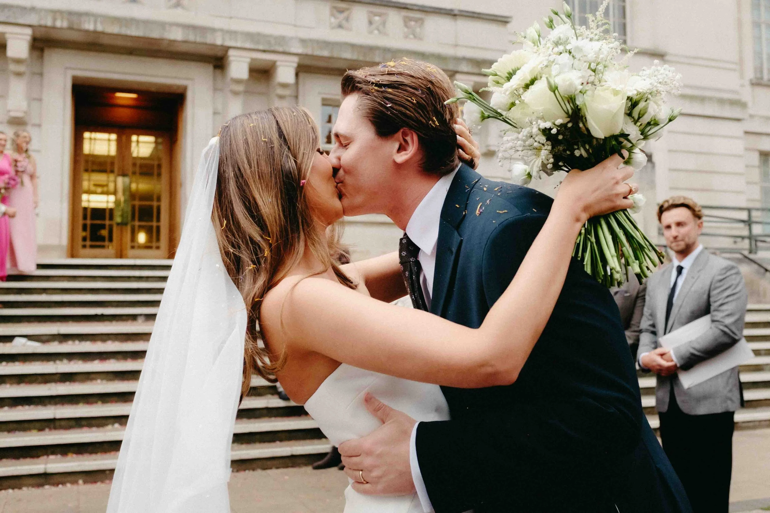 The town hall’s very London facade and entryway made for a very aesthetically pleasing backdrop for the exiting confetti thrown photos, with a big area to hang out and chat before moving on to the reception venue.