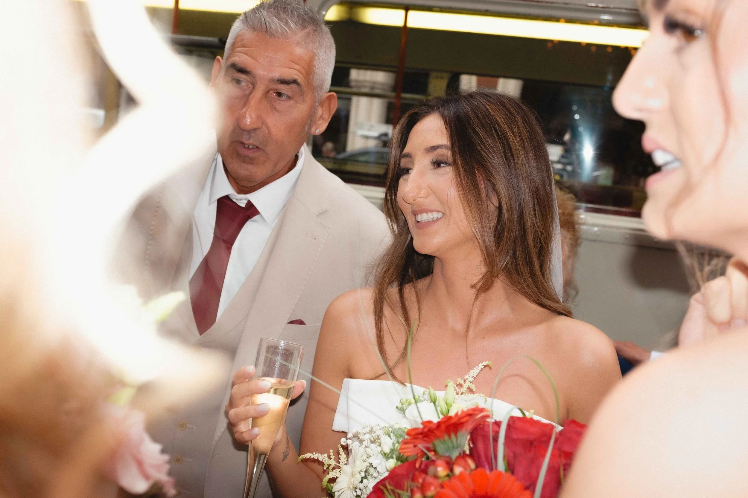 A double decker party bus awaited the exit of Levi, Liam and guests, which took us on a journey through through the winding streets into central London, where Eastcheap Records set the scene for the celebrations to come.