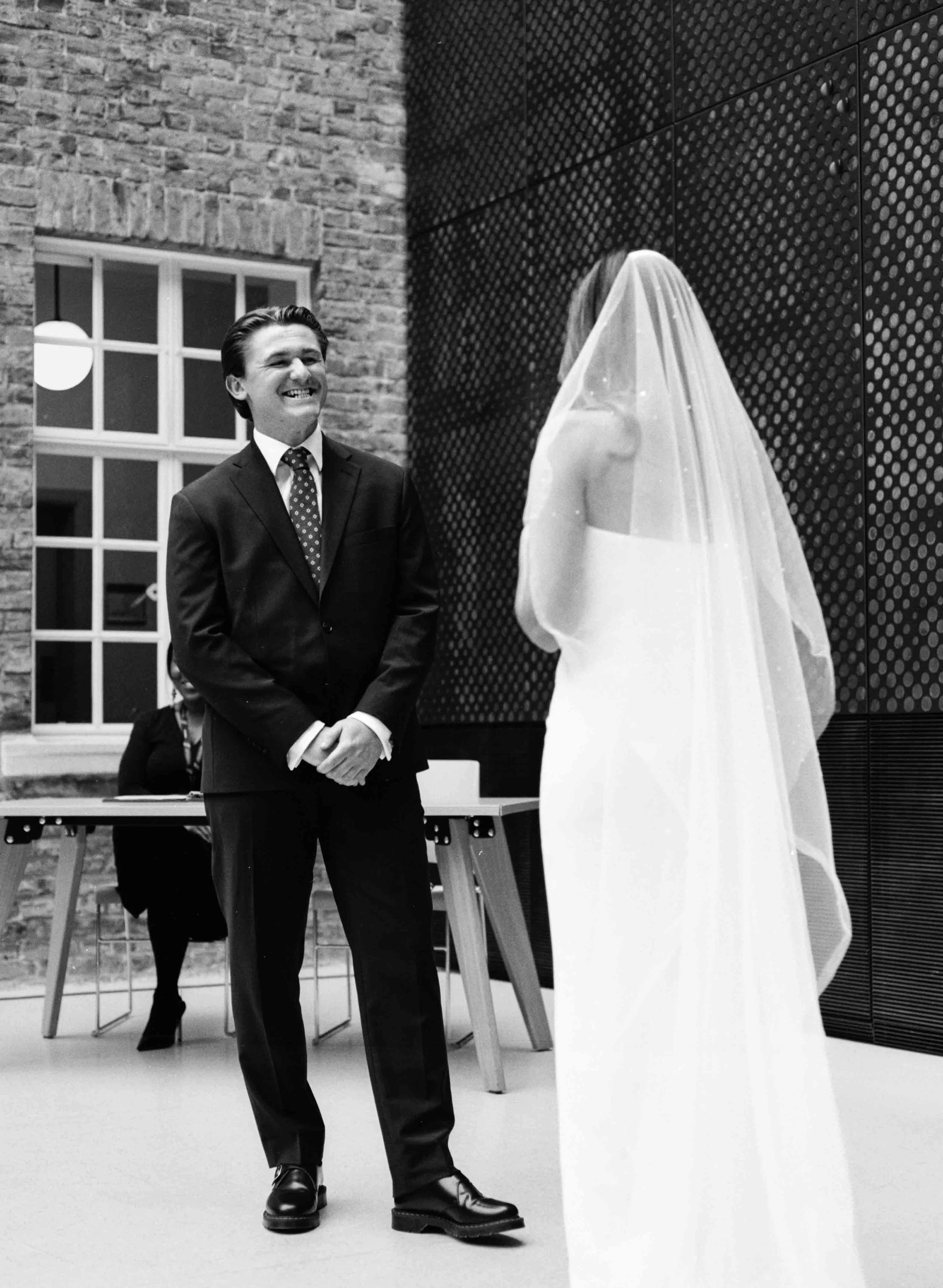 The East London town hall boasts an incredible full ceiling skylight that provides the best lighting that you could possibly hope for a town hall to have. No flashes or lighting equipment necessary for an entire ceremony - that’s ideal for everyone.